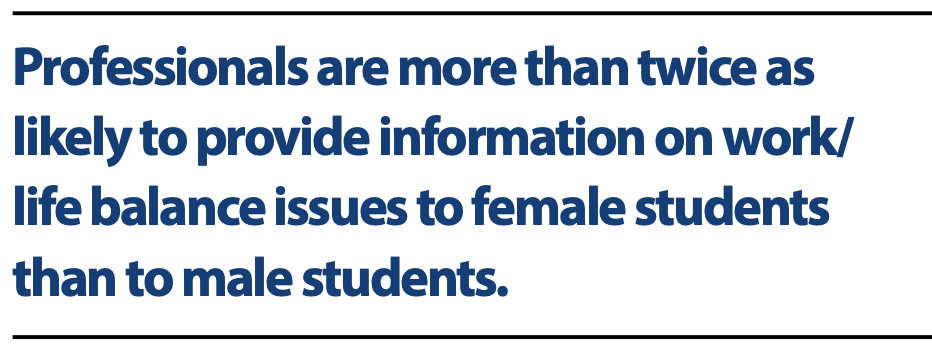 In contrast, professionals bring up workplace culture issues to male and female students at equal rates.