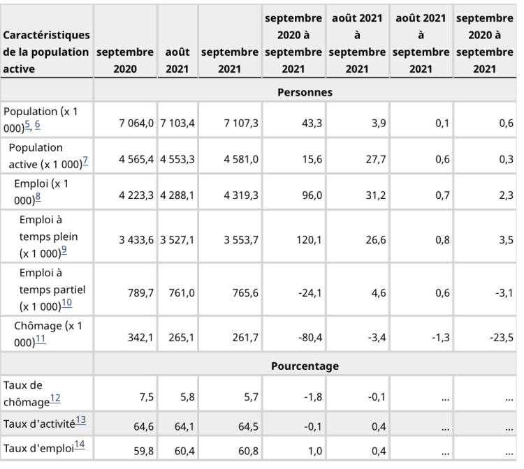 Extraits choisis par le Moniteur de l’emploi. Lire la suite @ Le Quotidien — Enquête sur la population active, septembre 2021