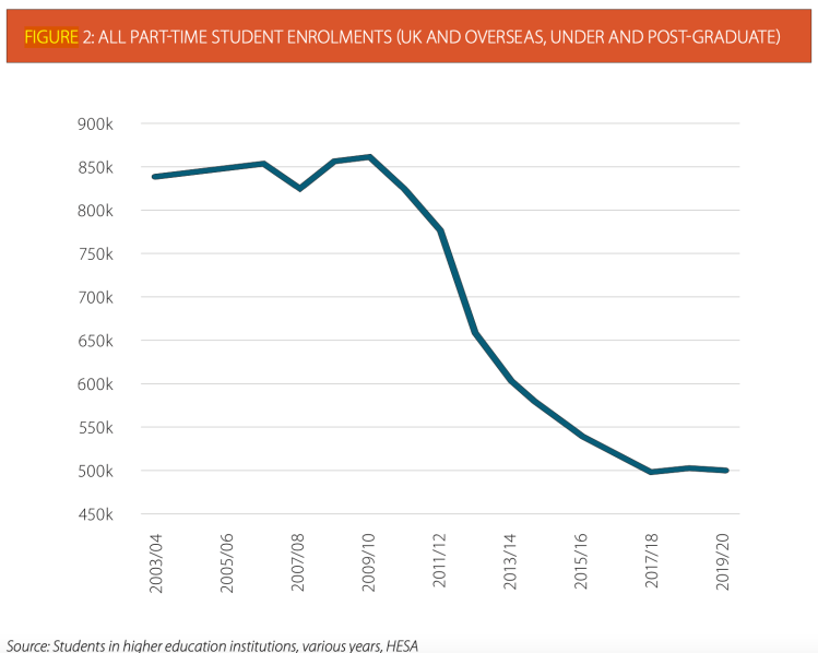 Moreover, the Lifelong Loan Entitlement will not be sufficient in itself to transform the supply of and take-up of provision. An immediate first step to supporting retraining at higher levels is to reassess current Equivalent or Lower Qualification (ELQ) rules. The loan entitlement must allow for existing graduates to upskill and retrain. Another way to reinvigorate adult learning is to retain the part-time student premium funding and make part-time study a ‘Strategic Priority’ for teaching grants.