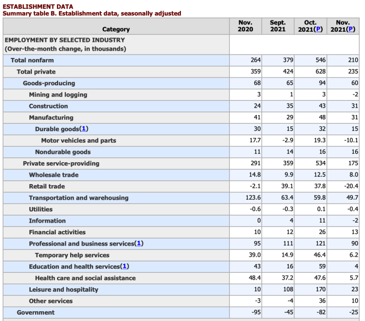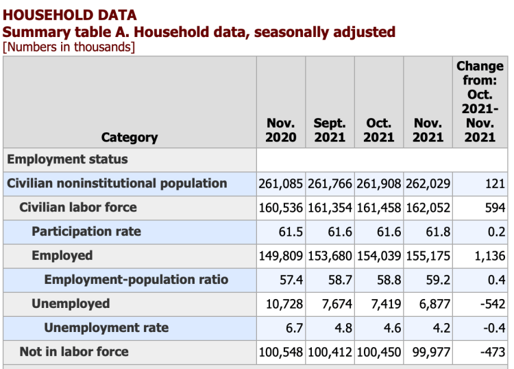 Chosen excerpts by Job Market Monitor. Read the whole story @ Employment Situation Summary – 2021 M11 Results