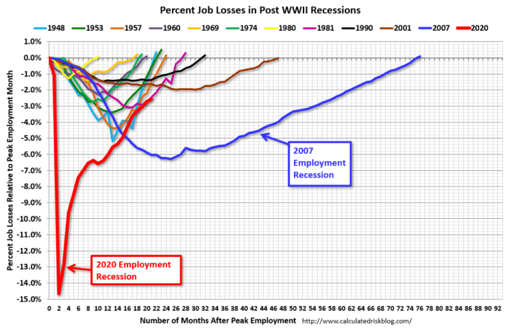 The unemployment rate fell by 0.4 percentage point to 4.2 percent in November. The number of unemployed persons fell by 542,000 to 6.9 million. Both measures are down considerably from their highs at the end of the February-April 2020 recession. However, they remain above their levels prior to the coronavirus (COVID-19) pandemic (3.5 percent and 5.7 million, respectively, in February 2020).