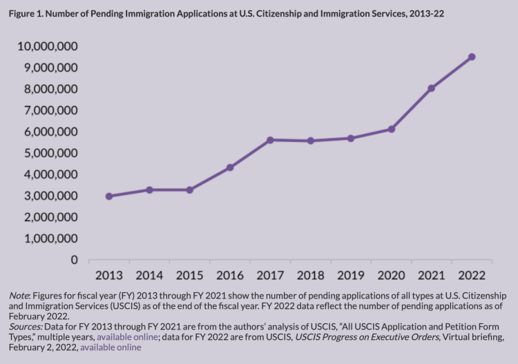 Much of the backlogs in processing immigration applications is a consequence of the COVID-19 pandemic, which forced a months-long stall to many government services in 2020 and created slowdowns even upon the reopening of offices at U.S. Citizenship and Immigration Services (USCIS) and the State Department, which respectively process applications for immigration benefits from individuals in the United States and abroad. But at USCIS and in the immigration courts where removal proceedings are decided, the pandemic only exacerbated sizeable bottlenecks that had existed for years.