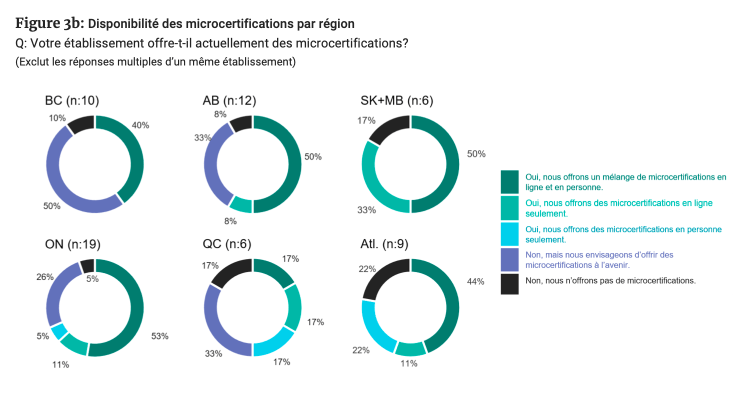 - Collaborer avec le gouvernement à des projets comme la création d’une base de données des microcertifications offertes, le suivi de la démographie de la clientèle des programmes de microcertifications et l’élaboration de programmes de cours communs au niveau national pour les microtitres axés sur des compétences transférables ou transversales tels que les compétences essentielles, numériques et écologiques.