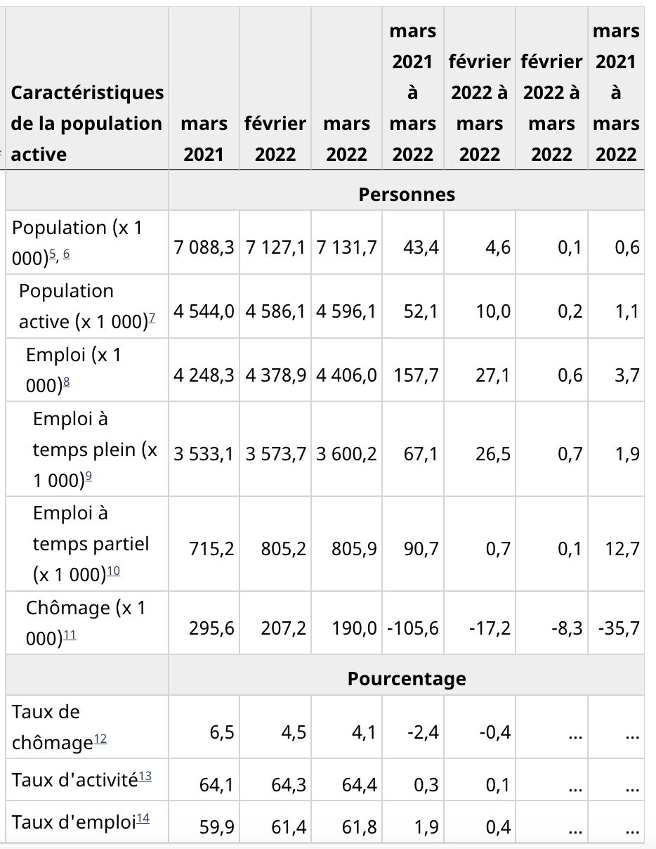 Extraits choisis par le Moniteur de l’emploi. Lire la suite @ Le Quotidien — Enquête sur la population active, mars 2022