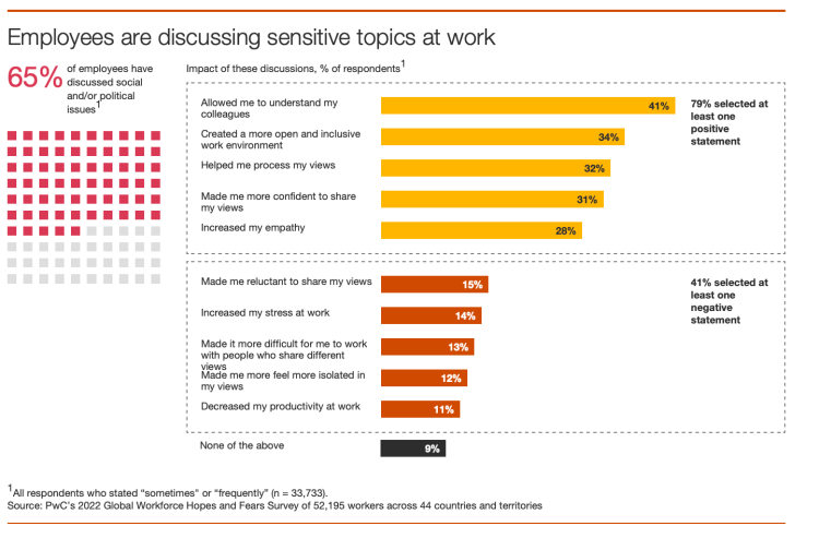 Chosen excerpts by Job Market Monitor. Read the whole story @ PwC’s Global Workforce Hopes and Fears Survey 2022 | PwC