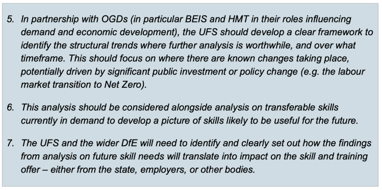 Quality Labour Market Information (LMI) can help identify where and how to achieve better skills alignment. The Board supports DfE’s plans for the new Unit for Future Skills (UFS), which has the aim of improving the quality, quantity, and accessibility of LMI for all its users across the skills system.