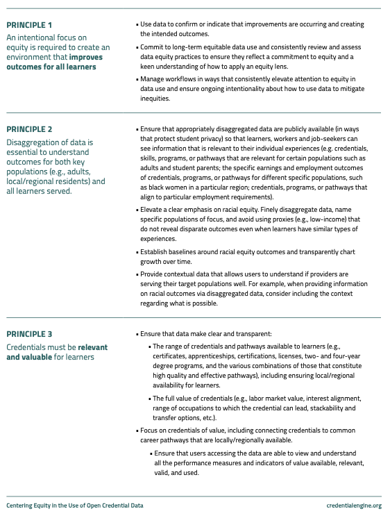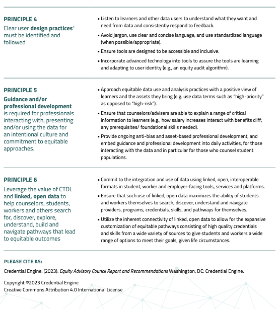 [T]he Council identified six broad principles for the appropriate and effective use of these data to support students’ discovery and successful navigation of pathways and transfer to achieve optimal and equitable outcomes.