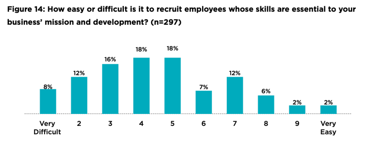 - SME skills demands are highest for cognitive skills (such as problem-solving skills) and technical skills (the ability to accomplish complex actions, tasks, and processes related to computational and physical technology). Recruiting candidates with strong enough social skills, which includes skills like collaboration, also presents a challenge.