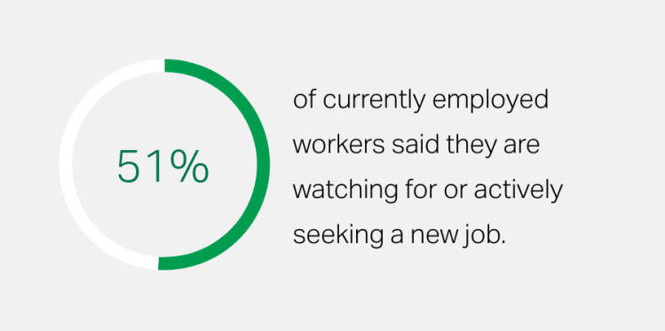 - Over half of employees are actively or passively job seeking.