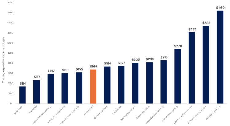 - Limited: Canadian firms invest modestly in training—an estimated $240 per employee annually—and lag their international peers in rates and hours of instruction.