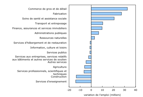 L’emploi progresse dans plusieurs secteurs, particulièrement dans le commerce de gros et de détail