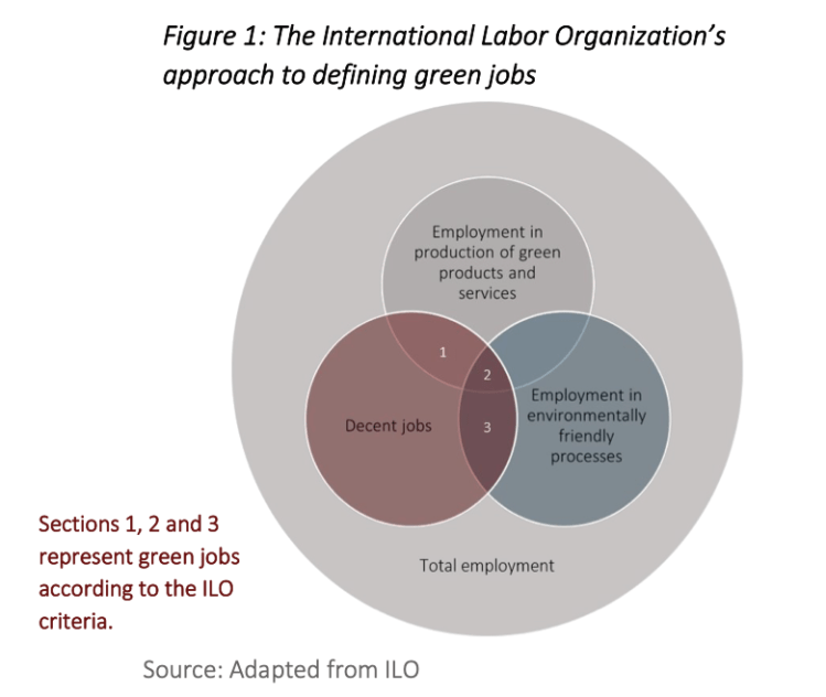 This report takes a mission-based approach to defining the green economy and identifying green jobs in central London, where a job is defined as green if it helps to deliver net zero or environmental goals. This approach builds on UK Government Green Jobs Taskforce definition. This definition was applied to data from the Low Carbon and Environmental Goods and Services (LCEGS) dataset and supervised machine learning through The Data City in order to provide an estimate of the number of green jobs in central London. Further analysis was then conducted based on various datasets, including research commissioned by the Climate Change Committee (CCC) and ONS labour force and business surveys to create a series of projections for future numbers of jobs, as well as to provide additional skills analysis.