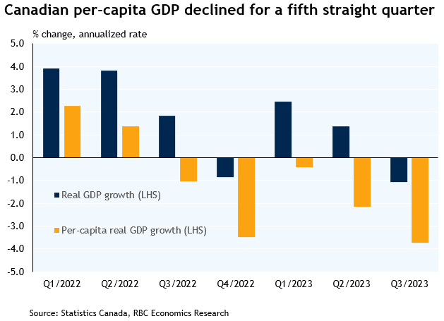 With population growing rapidly, per-capita growth rates continue to look substantially softer – GDP per-capita declined for a fifth straight quarter in Q3, consistent with a drift higher in the unemployment rate since the spring.