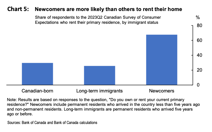On balance, we find that the immediate impacts of the recent rise in newcomers may have boosted consumption, but the inflationary impacts from this channel do not appear considerable. Moreover, the rise in immigration is significantly raising the non-inflationary growth rate of the economy by boosting the labour supply. The rise in immigration is nonetheless contributing to pressures in inflation components linked to house prices, given that it is adding more to housing demand than to housing supply in the context of structural imbalances in the Canadian housing market.