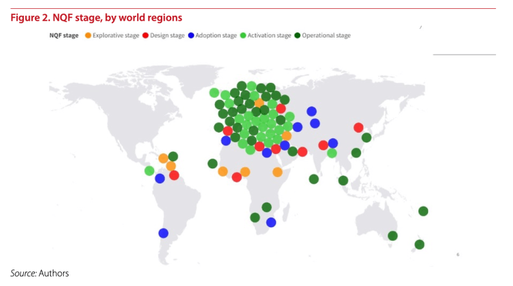 Experts from the four agencies10 applied a common benchmarking system to measure the progress of each individual NQF submitted for the analyses. This guide consists of a series of stages, titled, in ascending order, ‘explorative’, ‘design’, ‘adoption’, ‘activation’, and ‘operational’. Each stage has indicators which signal the extent of conceptual evolution, institutional and technical development, and addition of supporting tools and methodologies. Experts uses the associated indicators to determine the stage reached by the respective NQF examined.