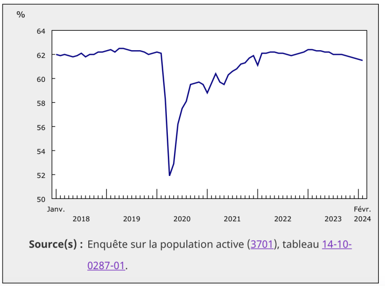 Extraits choisis par le Moniteur de l’emploi. Lire la suite @ Le Quotidien — Enquête sur la population active, février 2024