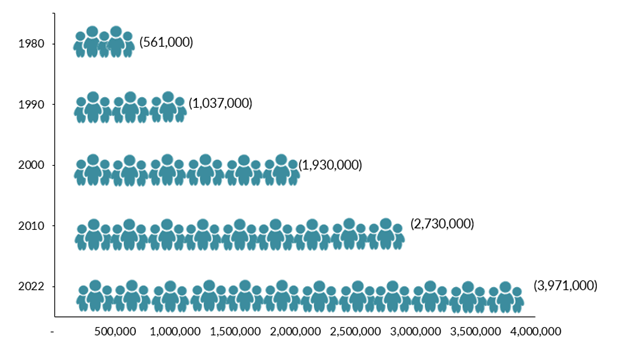 Figure 1. South American Immigrant Population in the United States, 1980-2022