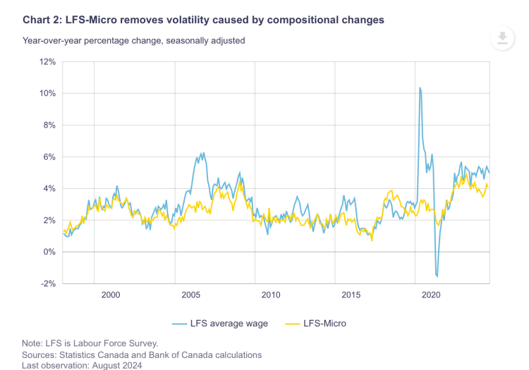 To achieve these goals, we introduce a new measure of underlying wage growth that we call LFS-Micro. This measure works within the limitations of the publicly available microdata from the LFS to calculate a measure of underlying wage growth that is separate from shifts in the composition of the Canadian workforce. We believe this approach improves our ability to monitor inflationary pressures coming from the labour market.
